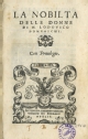 | Note | Riferimenti: EDIT16 CNCE 17550 Rielaborazione di De nobilitate et preecellentia foemimei sexus, di Heinrich Cornelius Agrippa von Nettesheim, cfr. NUC, v. 146, p. 273 Marche (Z538) sul frontespizio e (U387) in fine Corsivo, romano; segnatura: *⁸ 2*² A-2L⁸ 2M⁴ 2N²; iniziali e fregi xilografici Variante B: errori di imposizione nel fascicolo BB Variante C: come la variante A ma: [9], 272, [5] carte ; 8º; segnatura: *⁸ χ1 A-2L⁸ 2M⁴; la carta χ1r contiene il seguito della "Tavola delle donne illustri ...", il verso è bianco; non figura il fascicolo 2N come da registro in fine. |